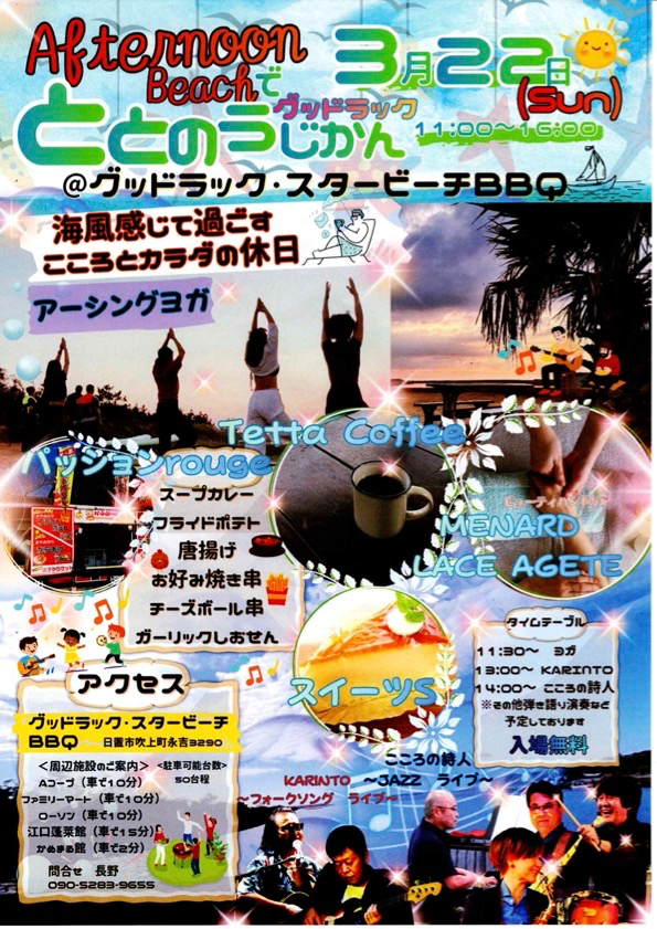 〒899-3221鹿児島県日置市吹上町永吉3290<営業時間>BBQ 11:00~17:00(サンセットプラン:17:00~20:00)キャンプ受付 14:00~17:00カフェ12:00~17:00